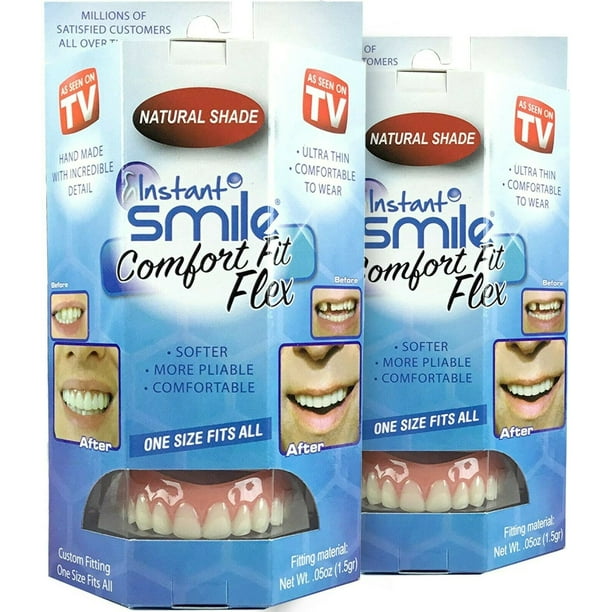 Instant Smile 2 Pack Of Natural Shade Makeover Comfort Flex Fit Top Upper Veneer Walmart Com